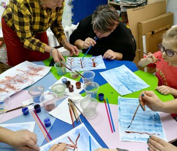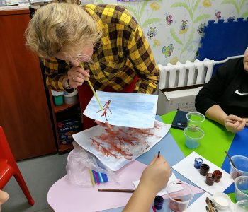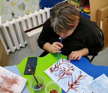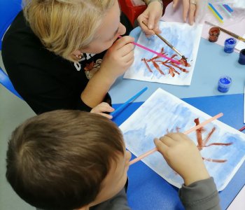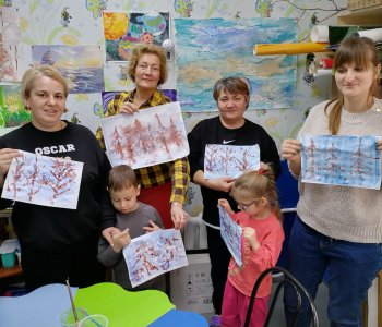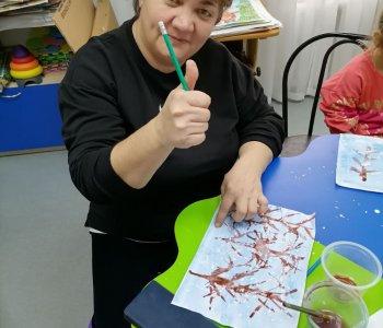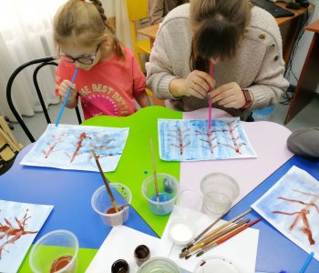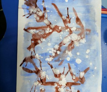 Наши воспитанники с родителями и воспитателем Федоренко Натальей Геннадьевной, ощутили атмосферу зимнего леса, покрывая листы бумаги, оттенками холодного синего цвета, разбавленного водой. Акварелью прорисовали стволы и ветки деревьев, раздувая их трубочками для коктейля.