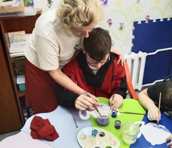 Воспитанники с воспитателем Федоренко Натальей Геннадьевной, рассмотрели элементы изобразительно-прикладного искусства - роспись Гжель.