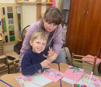 В рамках проекта «Я смогу!» 18.11.2025 состоялся мастер-класс социального педагога Кравченко Е.А.,педагога-психолога Аблямитовой Э.Н. «Открытка для мамы».