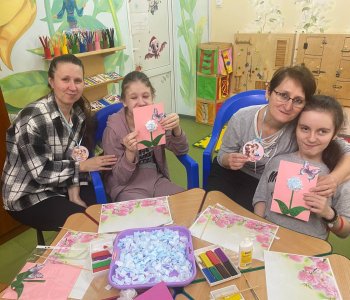 Ребята вместе с мамами с большим интересом изготовили поздравительные открытки.Работы получились яркими и красочными!Все свои добрые чувства и пожелания ребята вложили в созданные своими руками поздравительные открытки.Дети и мамы получили яркие,положительные эмоции и хорошее настроение!Приглашаем на наши занятия!