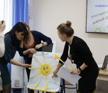 «Волшебные слова», часто употребляемые при общении в семье, являются обязательным правилом и при правильном обучении легко запоминаются ребёнку. А вежливое общение между членами семьи должно быть своеобразным обязательным ритуалом. На занятии дети освежили в памяти хорошо знакомые слова «Спасибо» и «Пожалуйста», обсудили ситуации, в которых они уместны, а также познакомились с «волшебным» справочником других, новых, добрых слов и выражений. Для закрепления полученного материала педагог- психолог провела с детьми увлекательное упражнение «Лучики Солнца».