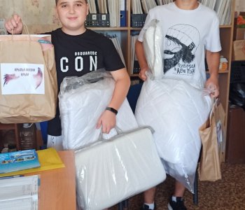 Была оказана благотворительная помощь от «Общество помощи незащищенным слоям населения «Крылья Жизни Крым» в виде творческих наборов в пакете крайф, с наклейкой « Крылья жизни Крым», одеяло и ортопедическая подушка.
