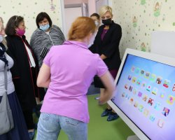 Наш реабилитационный центр ГБУ РК "РЦДПОВ" встречал гостей из города Москвы (председателя Совета ВОРДИ Елену Клочкову и директора Благотворительного фонда «Образ жизни» Елену Береговую) и министерства труда и социальной защиты Республики Крым (заместителя министра труда и социальной защиты Елены Лось, начальника управления по делам инвалидов Василия Хмель и заведующей отделом по реабилитации и социальной интеграции инвалидов Натальи Могаричевой). Гостям была проведена ознакомительная экскурсия по реабилитационному центру, в ходе которой был отмечен высокий уровень профессионализма сотрудников учреждения, современное техническое и методическое оснащение кабинетов.