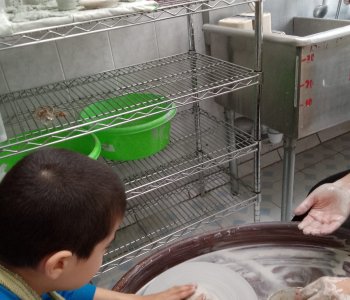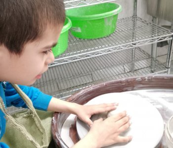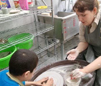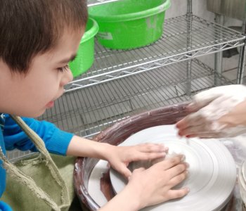 С огромным интересом родители наблюдают за тем, как дети под руководством педагога работают за гончарным кругом. «Лепка из глины – одновременно простой и очень сложный процесс, ведь технически ребенок просто играет с мягким материалом. Все конечно же так, но не совсем – в процессе работы с глиной дети развивают мелкую моторику рук, что очень сильно сказывается на развитии мозга» - так комментирует занятие педагог Ермакова К.Н.