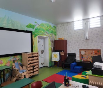 Оборудование: комплект психолога «Пертра», аудио визуальный комплекс Диснет (персональный компьютер; проектор, ресивер, 2 колонки, Экран, наушники), ноутбук ,парты для групповой и индивидульной работы с детьми, кожаные кресла для релаксации. Дополнительно: игровой набор «Приоритет», методики для диагностики высших психических функции и эмоционально-волевой сферы, дидактические пособия и игры для работы с детьми и подростками.