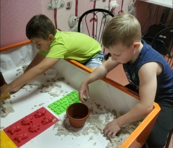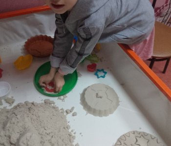 В процессе рисования песком повышается тактильная чувствительность, развивается мелкая моторика рук