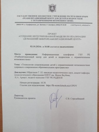 02.10.2024 в ГБУ РК "Реабилитационный центр для детей и подростков с ограниченными...