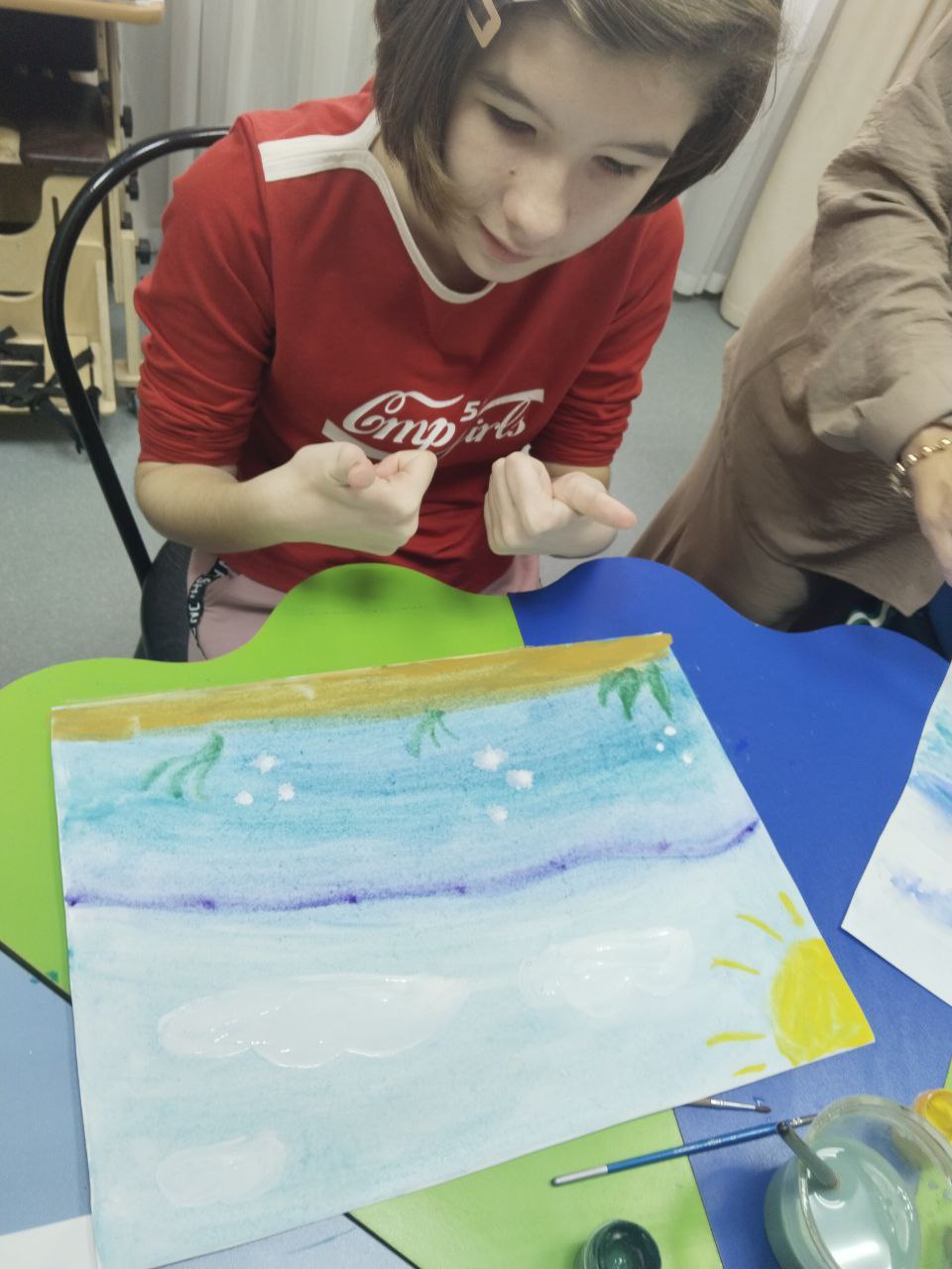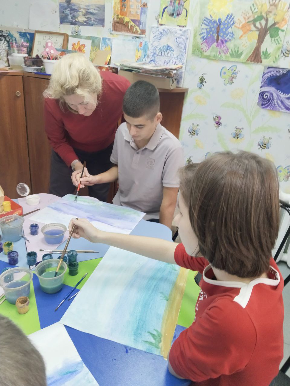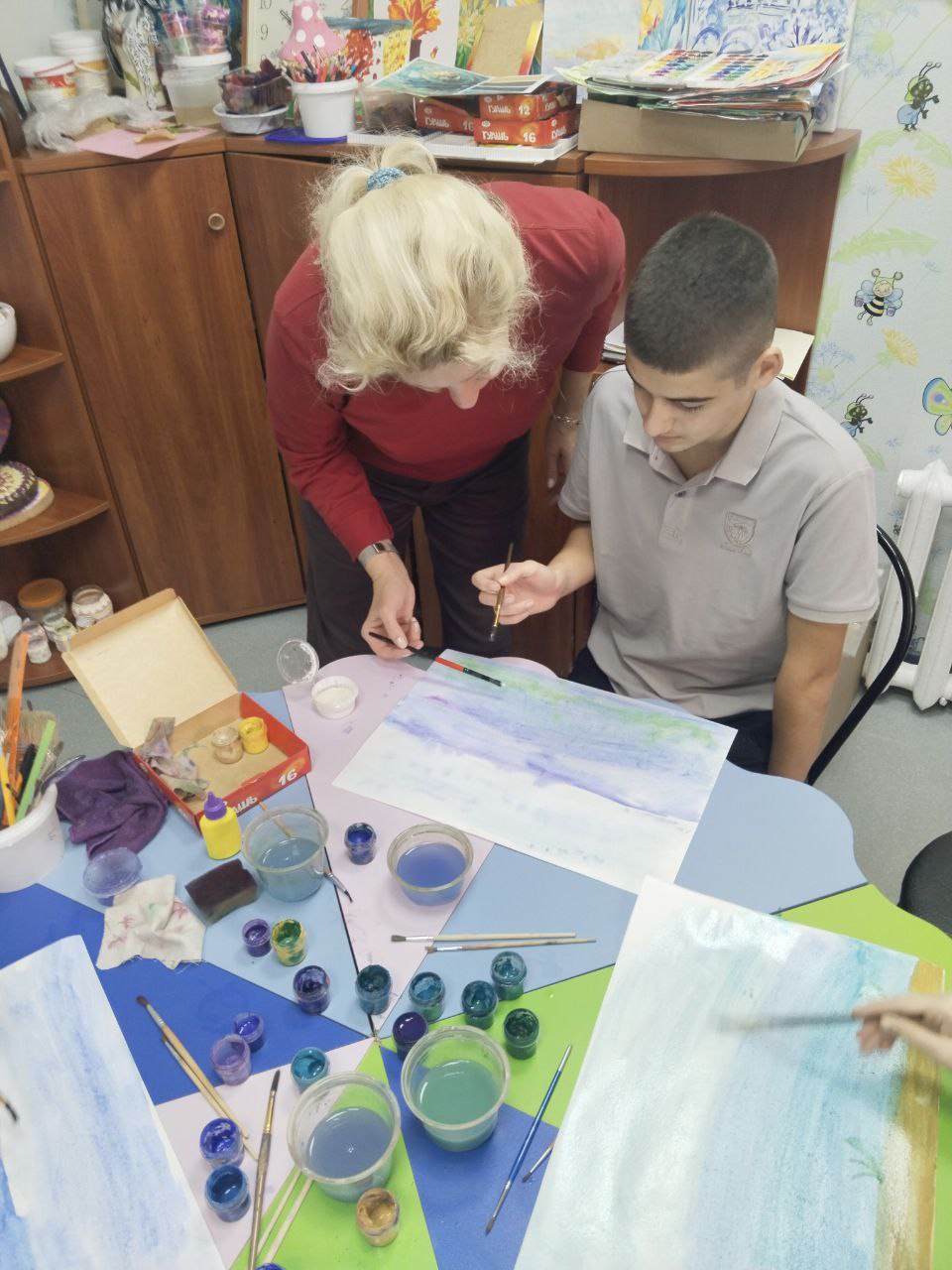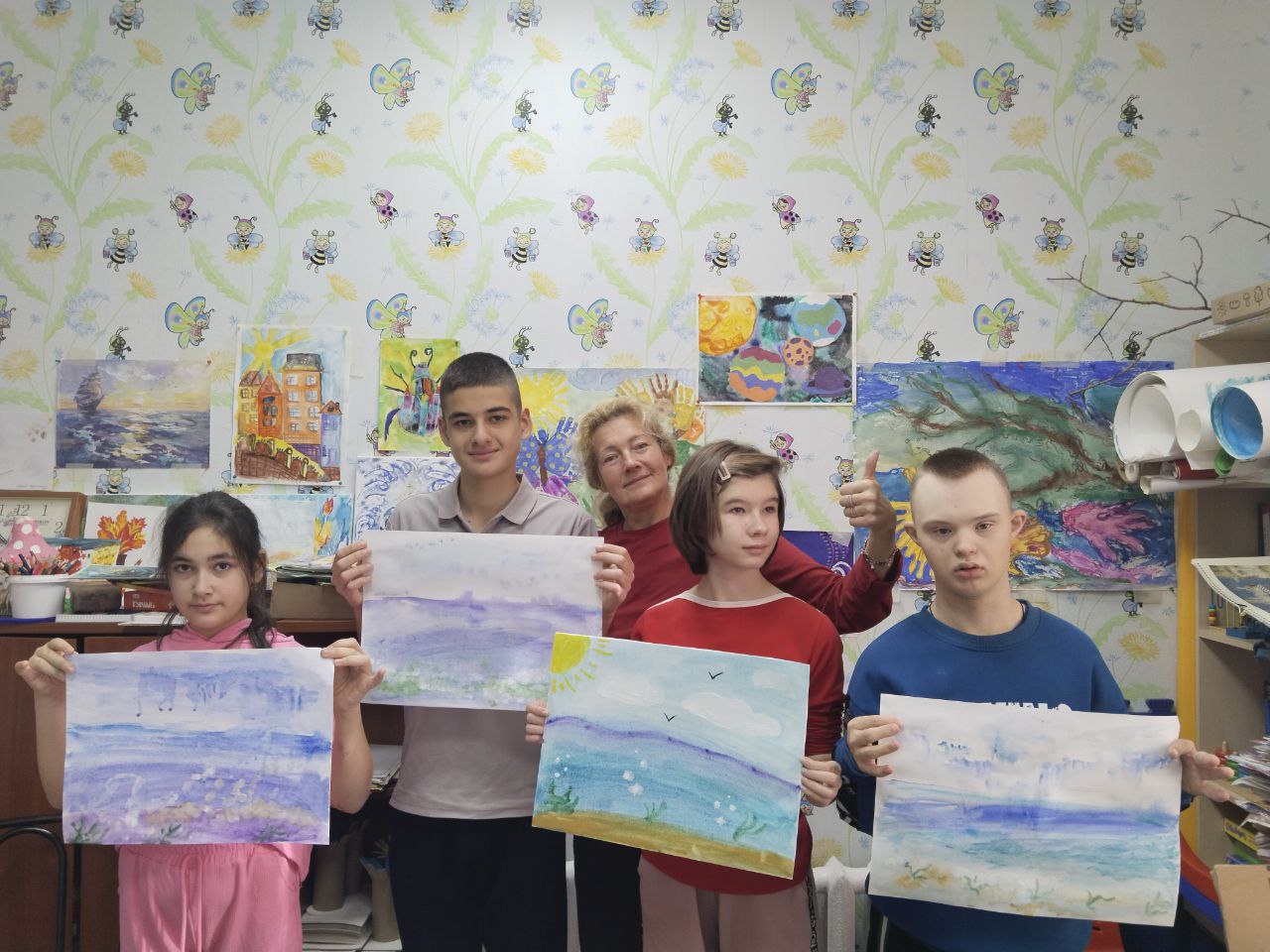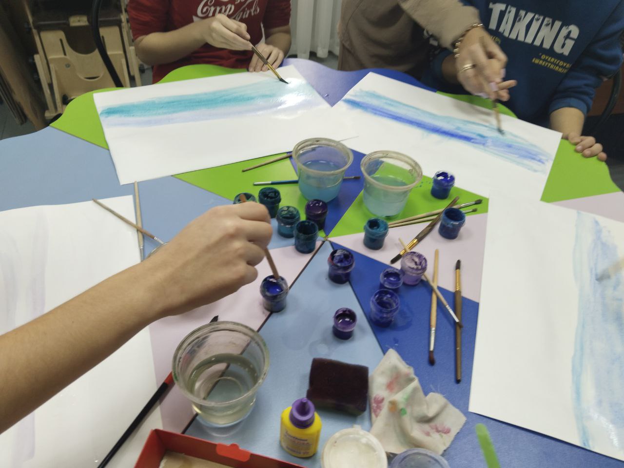 На площадке Творческой мастерской " Радуга", прошел запланированный открытый урок "Палитра моря".