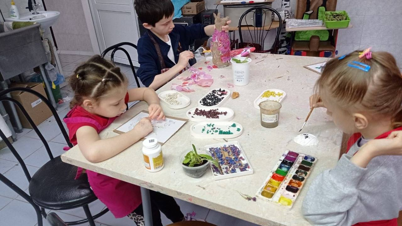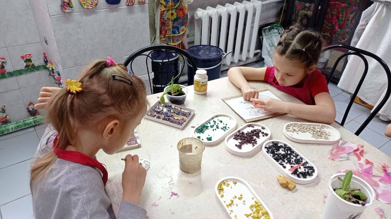 Наше занятие было посвящено сразу нескольким видам искусства и главному событию — подготовке к Пасхальной выставке.