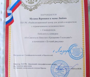 Семья Вероники Мухиной и её мамы Любови Базилий стали победителями в номинации "Лучший рисунок." Почетные грамоты были вручены 19 января 2022 года на торжественном закрытии выставки.